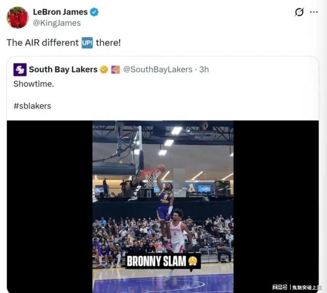 對(duì)此,勒布朗詹姆斯轉(zhuǎn)發(fā)評(píng)論道:“上面的空氣與眾不同啊!”。由此可見,老詹對(duì)布朗尼的這一攻防表現(xiàn)是感到頗為得意!