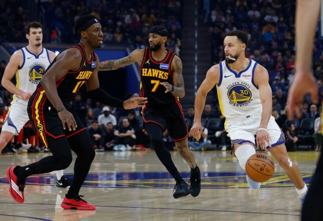 勇士最近幾場表現(xiàn)不錯,得益于替補席梅爾頓挺身而出,但球隊整體缺少穩(wěn)定第三得分點也是事實。老鷹這邊,送走特雷楊換來邁克勒姆的交易,CJ也迎來老鷹首秀,回顧一下比賽。開場庫里撤步中投+造殺傷,巴特勒和博斯特內(nèi)外開花,庫里也打開三分手感,勇士取得14-4的開局。老鷹這邊全靠杰倫約翰遜上分,中段奧孔武聯(lián)合邁克勒姆發(fā)力,杰倫約翰遜真準,帶隊很快反超勇士。后半段庫里跳投止血后,巴特勒和霍福德下三分雨,第一節(jié)勇士28-27老鷹。進入第二節(jié),波杰姆斯基續(xù)上三分,梅爾頓和小佩頓繼續(xù)拉大分差。