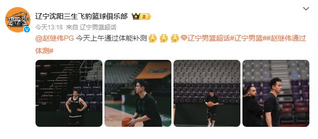 如今遼寧男籃通過社媒曬出一組趙繼偉體測的照片,并且表示:“趙繼偉體測通過?!?/p>