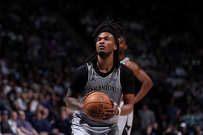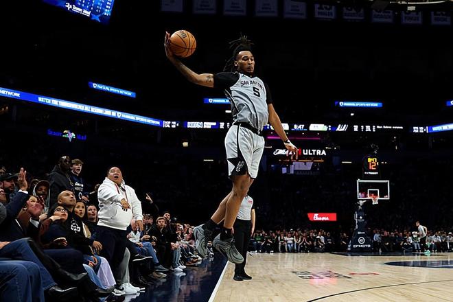 本場比賽中,馬刺的先發(fā)后場新星斯蒂芬-卡斯爾(Stephon Castle)又一次打出了上頭的表現(xiàn)??ㄋ範柸珗龀鰣?4分40秒,投籃11中2,三分線外1中0,罰球10中7,得到了11分6籃板5助攻的數(shù)據(jù),還有觸目驚心的7次失誤和4次犯規(guī),正負值為+1。卡斯爾在進攻端依然是繼續(xù)著自己的上頭表現(xiàn),他的進攻效率很不理想,他在外線投籃方面也依然沒有任何手感,他的進攻選擇依然很不合理,而且他在失誤控制方面實在是做得太糟糕了。甚至他在防守端的表現(xiàn)都是令人非常失望的,同樣沒有起到任何的作用??傮w來看,卡斯爾的表現(xiàn)是災難級別的,他的一系列糟糕表現(xiàn)也是球隊陷入危機的關(guān)鍵因素,但凡他的表現(xiàn)稍微好一點,也許馬刺都能夠拿下比賽的勝利。