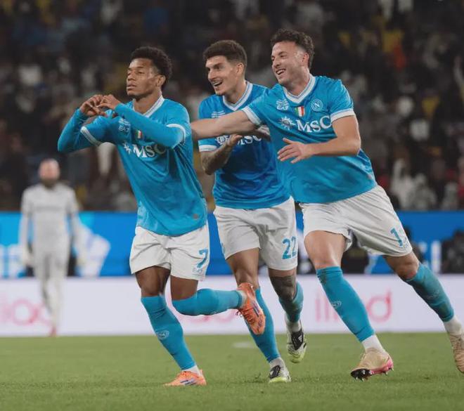 沙特國(guó)王大學(xué)體育場(chǎng)的夜晚,燈光像撒了一把碎金,落在內(nèi)雷斯的球鞋上。第39分鐘,他右肋持球的瞬間,整個(gè)球場(chǎng)都靜了——虛晃、內(nèi)切、起腳,皮球劃出一道帶著復(fù)仇火焰的弧線,繞過博洛尼亞門將拉瓦利亞的指尖,“砰”地砸進(jìn)遠(yuǎn)角。看臺(tái)上的那不勒斯球迷跳起來,喊聲震得體育場(chǎng)的頂棚發(fā)顫:這不是一個(gè)普通的進(jìn)球,是他們等了43天的“算賬”,是孔蒂帶來的“復(fù)興宣言”。