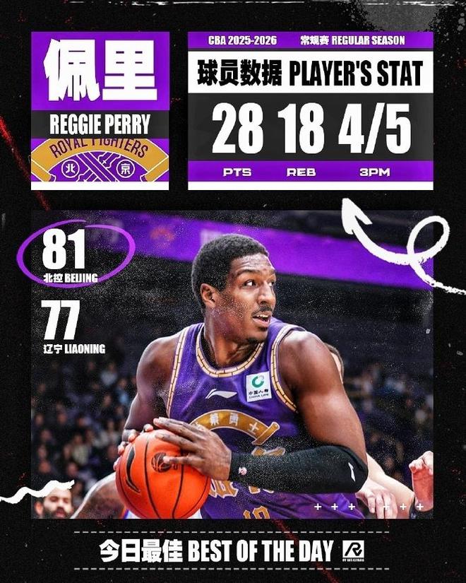 北控球員佩里以單場(chǎng)18個(gè)籃板的數(shù)據(jù)領(lǐng)銜籃板榜。