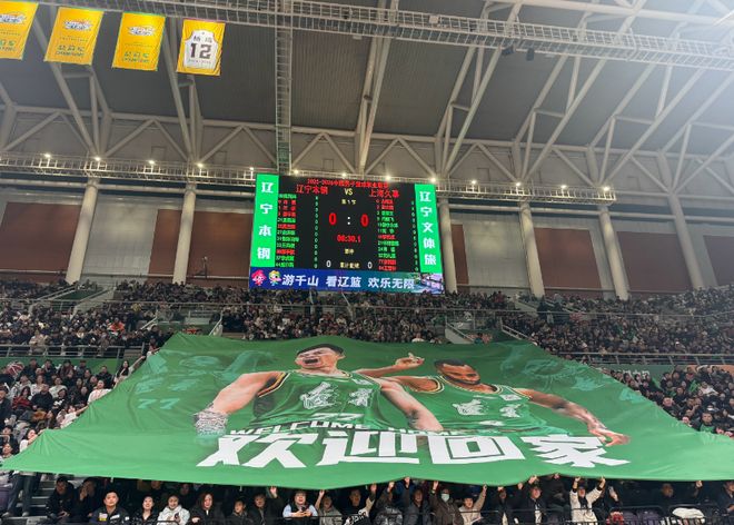 遼寧球迷主場(chǎng)巨幅海報(bào)歡迎張鎮(zhèn)麟與弗格“回家”。