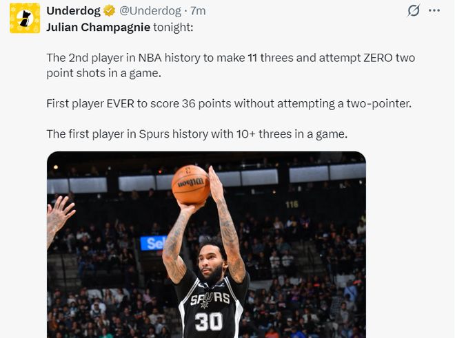 6.他也是馬刺隊史首位出手全來自三分球拿到35+的球員;