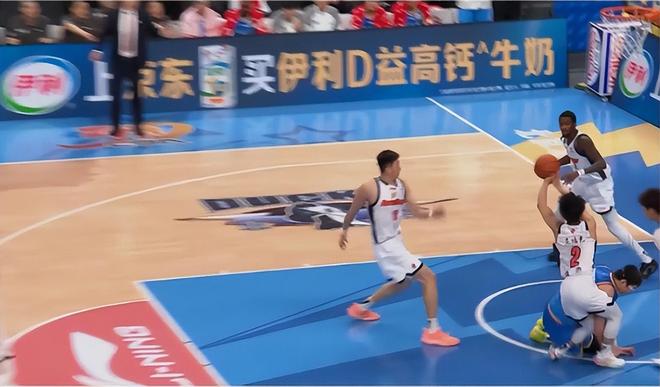 比賽第二節(jié)還剩4分07秒,場(chǎng)上發(fā)生意外,薩林杰前場(chǎng)上籃打中,北京快發(fā)底線球反擊,周琦在反擊過(guò)程中接應(yīng)杰曼長(zhǎng)傳準(zhǔn)備下快攻,但過(guò)程中不慎被薩姆納絆倒,周琦失去重心摔倒,不幸撞傷了徐杰。