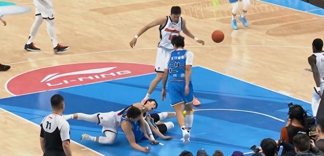 情況是這樣的:當?shù)诙?jié)比賽還剩4分14秒的時候,廣東男籃進攻,外援薩姆納突破北京北汽男籃內(nèi)線多名防守隊員,上籃打進。北京北汽男籃外援斯佩爾曼快速將球發(fā)給杰曼。杰曼接球后,抬頭見周琦正向籃下跑,迅速將球傳向周琦,周琦抬手剛想接球,身后的廣東男籃外援薩姆納,用肘部力量并腳下小動作,將周琦放倒。周琦倒下的瞬間,徐杰正向他撲來,如此,周琦直接撞向了徐杰,且上身重重砸中了徐杰的腿部。從慢鏡頭可以看出,徐杰被撞倒時,左腿是反向彎曲的。