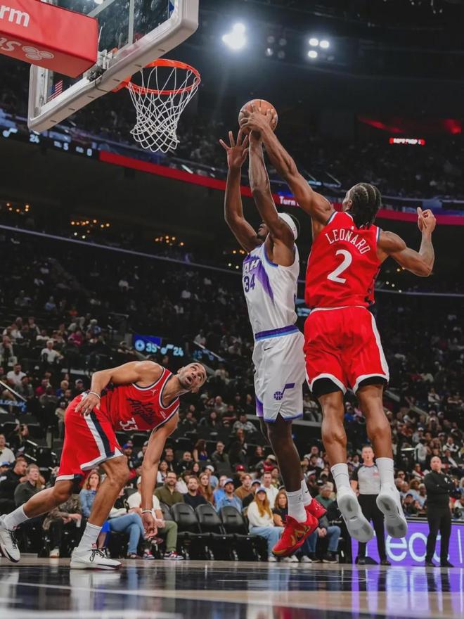 爵士三分也不準(zhǔn),上半場只有14中2,但是三分出手?jǐn)?shù)比快船少了10次。內(nèi)線得分爵士36-16完爆快船,半場戰(zhàn)罷,快船53-50只領(lǐng)先3分。爵士9人休戰(zhàn),快船第二節(jié)輸了11分……李凱爾8中7,半場砍下16分8籃板,正負(fù)值+18!