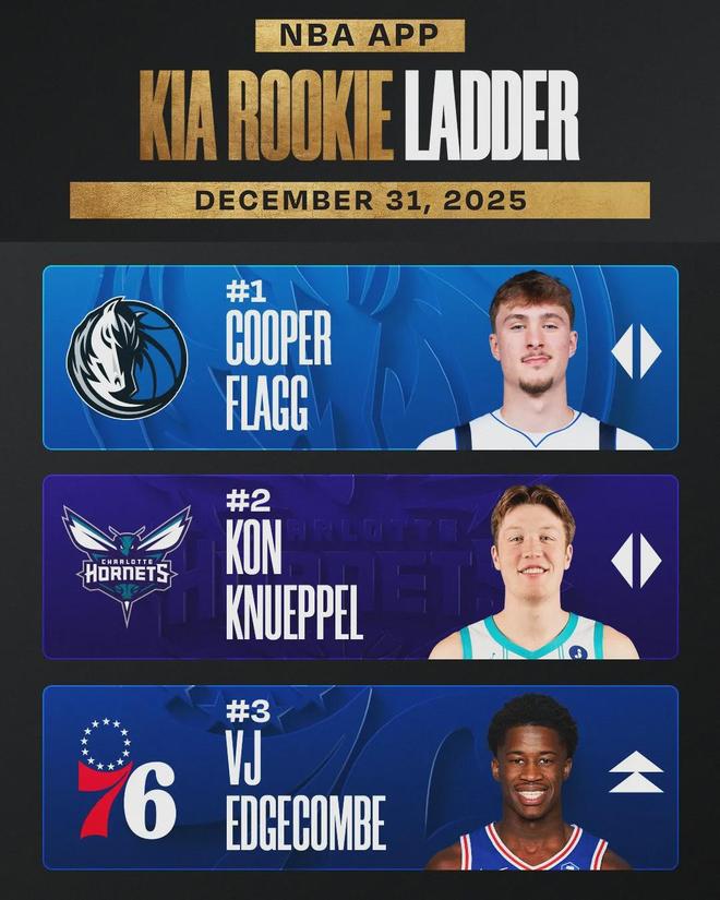 談及跟埃奇庫(kù)姆對(duì)位的感受,弗拉格賽后表示:“我并不覺(jué)得這算是一場(chǎng)宿敵對(duì)決,但是伴隨著最佳新秀等獎(jiǎng)項(xiàng)的評(píng)選,大家總會(huì)把你和同屆新秀放在一起比較?!弊钚乱黄诘墓俜叫滦惆瘢ダ窭^續(xù)排名第一,埃奇庫(kù)姆重返前三。