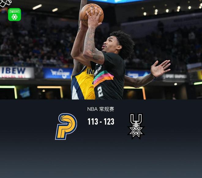 第四節(jié),開節(jié)馬刺凱爾登連續(xù)兩記三分再度領(lǐng)先至13分,步行者西亞卡姆、謝潑德站出來得分縮小分差,馬刺哈珀立刻回應(yīng),節(jié)中段馬刺凱爾登、哈珀繼續(xù)聯(lián)手得分領(lǐng)先來到17分,后半節(jié)步行者內(nèi)史密斯、西亞卡姆、內(nèi)姆布哈德相繼得分縮小分差,來到最后3分鐘內(nèi)姆布哈德、波特相繼三分追至8分,馬刺??怂钩h(yuǎn)三分穩(wěn)住局面,步行者無力繼續(xù)反撲,最終步行者113-123不敵馬刺。