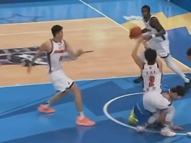 那是比賽第二節(jié)的一個(gè)回合,當(dāng)時(shí)薩姆納跟周琦出現(xiàn)了一次對(duì)抗,周琦失了重心,摔倒碰到徐杰。