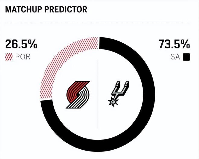 賽前,美媒ESPN對本場比賽進(jìn)行了勝率預(yù)測,開拓者的勝率僅有26.5%,劣勢明顯,馬刺隊(duì)的勝率則高達(dá)73.5%。