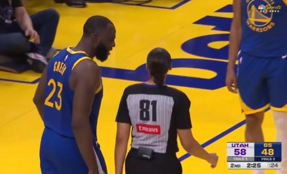 在比賽進(jìn)行到第二節(jié)末端時(shí),爵士前鋒馬爾卡寧突入籃下雙手暴扣,隨后勇士?jī)?nèi)線追夢(mèng)格林對(duì)陣底線的女裁判喋喋不休,連續(xù)吃到兩次技術(shù)犯規(guī)被驅(qū)逐離場(chǎng)。