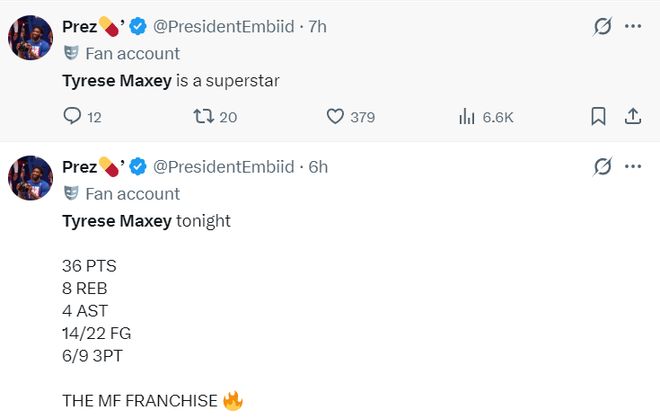 此役馬克西全場比賽37分鐘,22中14,三分9中6,罰球4中2,拿到36分8籃板4助攻1搶斷2蓋帽,命中率63.6%,三分命中率66.7%,他的35+場次在本賽季東部排名第一。
