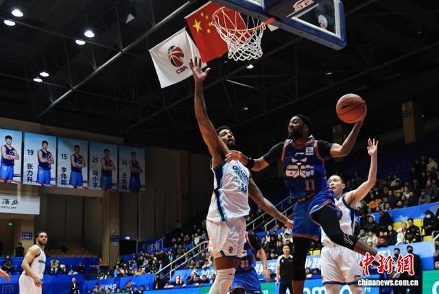 四川男籃外援龐茲(藍衣)此役得到全隊最高的27分9助攻,在關(guān)鍵時刻幫助球隊追分。記者 王磊 攝