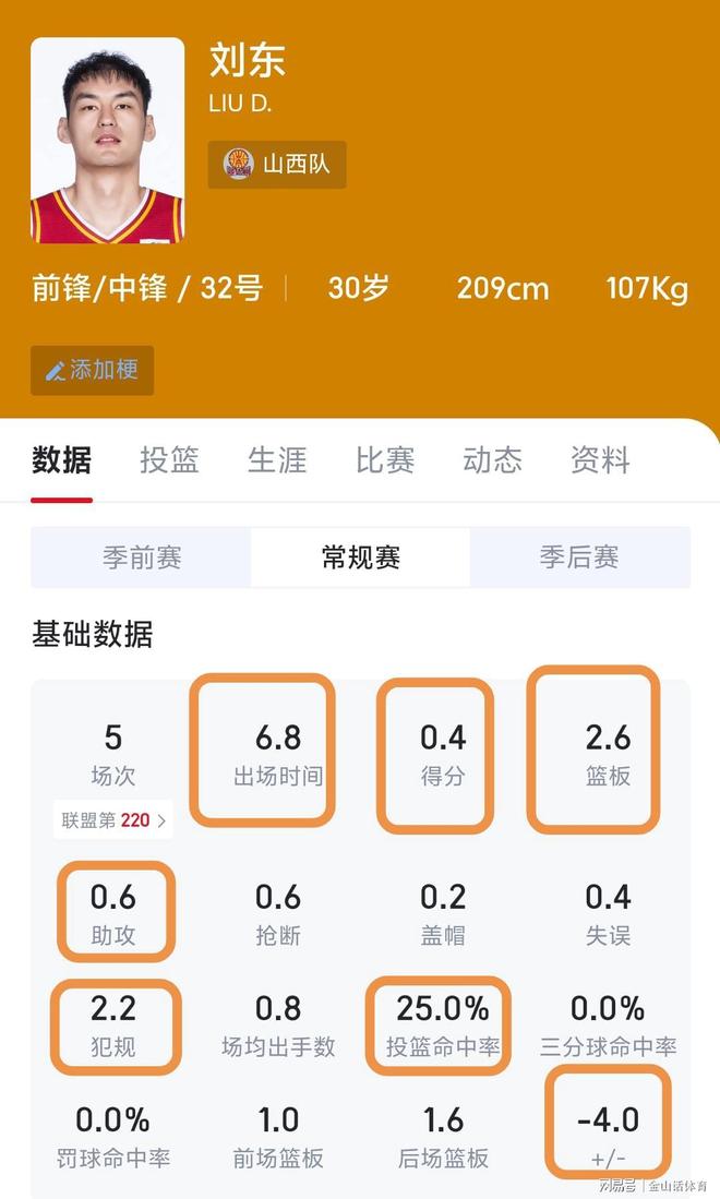 值得一提的是,本場比賽,山西隊(duì)11人有得分或數(shù)據(jù)進(jìn)賬,唯獨(dú)有一人,主要數(shù)據(jù)為0,對球隊(duì)的貢獻(xiàn)為-8,而這個(gè)人正是劉東。全場比賽,劉東出戰(zhàn)4分07秒,數(shù)據(jù)為0分0板0助0斷,所有數(shù)據(jù)中只有1個(gè)失誤。更要命的是,全隊(duì)贏了14分,而劉東在上場的4分多鐘里,球隊(duì)卻輸了8分(正負(fù)值-8)。這還沒完,劉東打了短短4分鐘,竟然5次犯規(guī)離場,平均50秒左右一個(gè)犯規(guī)……