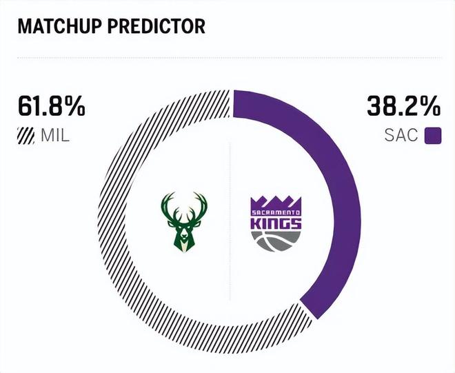 賽前,美媒ESPN對本場比賽進(jìn)行了勝率預(yù)測,雄鹿隊(duì)勝率高達(dá)61.8% ,國王勝率則僅有38.2%,劣勢非常明顯。