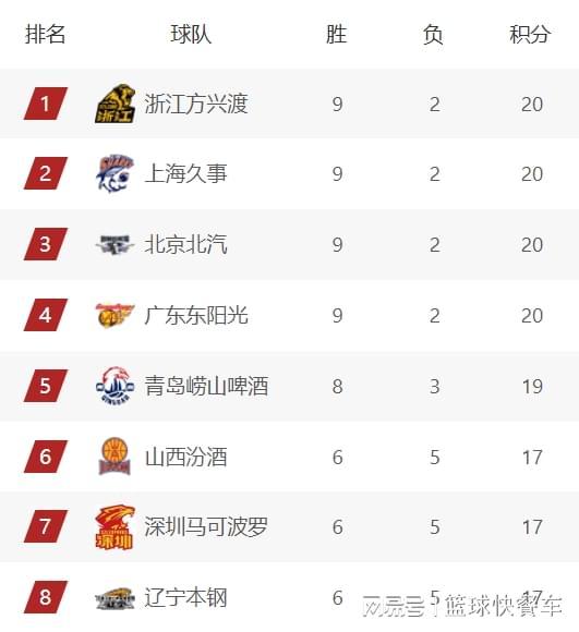 附:CBA積分榜最新排名