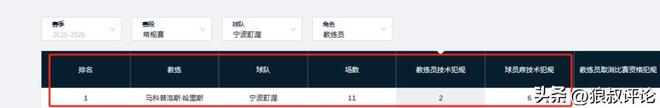 截止目前的11輪,寧波的外籍教練員哈里斯領到了2次技術犯規(guī),但球員席技術犯規(guī)就高達6次,領跑聯(lián)盟第一。