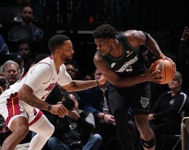 森林狼主場迎戰(zhàn)熱火,森林狼方面香農缺陣,熱火方面哈克斯缺陣,首節(jié)比賽熱火稍占上風,取得2分領先,從第二節(jié)開始森林狼完勝熱火,最終森林狼大勝28分。愛德華茲18中8(三分8中5)得到26分5板3助2帽,蘭德爾12中6得到15分11板5助,戈貝爾6中5得到13分17板2帽,熱火方面鮑威爾17中9(三分6中3)得到21分3板4助,希羅15中7得到17分9板3助。