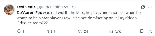 美球迷:??怂垢静慌淠欠蓓斝胶贤偸请S意的將自己稱之為明星球員,結(jié)果帶隊(duì)打不過傷兵滿營(yíng)的灰熊。