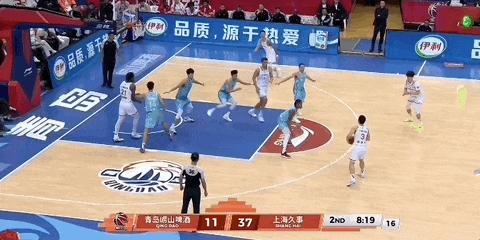 比賽開始后,上海男籃在反擊方面做得非常好,開局打出了一個(gè)10-0的小高潮,打停青島男籃。