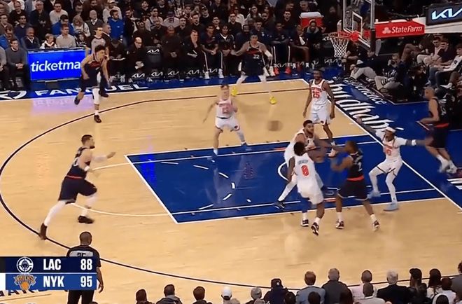 當(dāng)然之所以有這樣的結(jié)果,還是因為他在進攻端的發(fā)揮太糟糕了,這張圖就可以看出來。當(dāng)時倫納德突破到內(nèi)線,尼克斯立馬三個人對其包夾,這樣的畫面在這三場比賽都在展現(xiàn)。即便祖巴茨去外線,他是沒有三分能力的,那么對手肯定可以放棄他這個點。如果到時候洛佩斯在外線,對手根本不敢這么防。