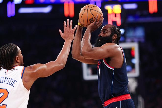 此役,哈登回歸,泰倫盧派出的首發(fā)為哈登、鄧恩、祖巴茨、倫納德以及科林斯,尼克斯這邊首發(fā)為布倫森、麥克布萊德、唐斯、布里奇斯以及阿努諾比。首節(jié)比賽開打,哈登搶斷助攻倫納德3分命中,祖巴茨勾手連拿4分,快船7-0開局。隨后,阿努諾比打進(jìn)2+1,科林斯補(bǔ)籃拿2分,唐斯強(qiáng)突祖巴茨打進(jìn)2分,科林斯正面3分命中,鄧恩上反籃打進(jìn)2分,布里奇斯3分命中,阿努諾比快下反擊爆扣,麥克布萊德3分一箭穿心,祖巴茨內(nèi)線起飛再拿2分,布倫森歐洲步上籃,倫納德打進(jìn)2+1,克拉克森、布倫森3分飆進(jìn),大洛3分還擊,兩隊(duì)陷入對(duì)攻戰(zhàn),在哈登造3分犯規(guī)三罰全中后,首節(jié)打完,快船31-27領(lǐng)先尼克斯4分。