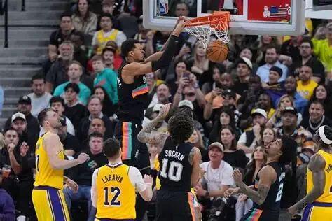 艾頓和海耶斯只能勉強(qiáng)支應(yīng)禁區(qū),但他倆被文班牽制時(shí),馬刺不算強(qiáng)勁的翼側(cè)都能肆虐湖人籃下。