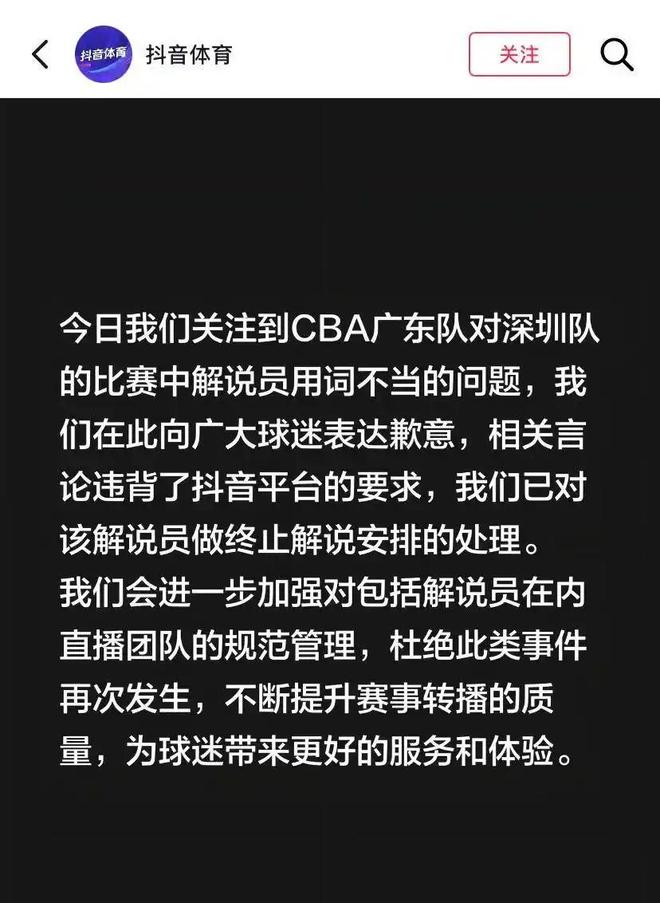另外一方面,還有球迷把這個事情反映到平臺官方這邊,目前官方的負(fù)責(zé)人也已經(jīng)站出來表態(tài)回應(yīng)說針對這一名解說員的行為進行停職處理。另外他也表示當(dāng)事人應(yīng)該是不知情的說出這番話,沒想到傷害了廣東球迷的感情。當(dāng)然面對平臺的這一番回應(yīng),相信有些球迷應(yīng)該還是不滿意的。如果此人不了解廣東球迷的話,不可能說出這番非常難聽的話,所以我們還是希望接下來平臺能夠針對這名解說員永不錄用。