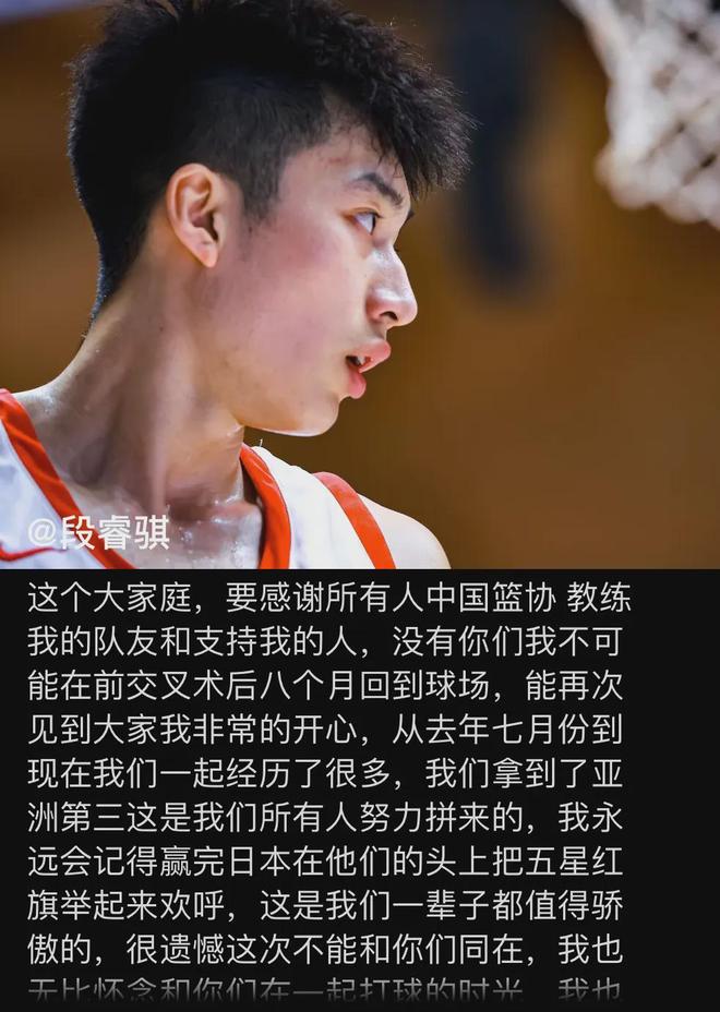 遺憾的是,段睿騏在此后對陣約旦男籃的亞洲杯三、四名決賽當(dāng)中,為了一個出界球重重甩出場外,拼斷了右膝前交叉韌帶,最后經(jīng)診斷賽季報(bào)銷要休養(yǎng)40周。