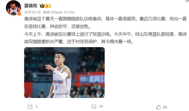 高詩巖因?yàn)殡p膝積液嚴(yán)重這場比賽輪休一場。
