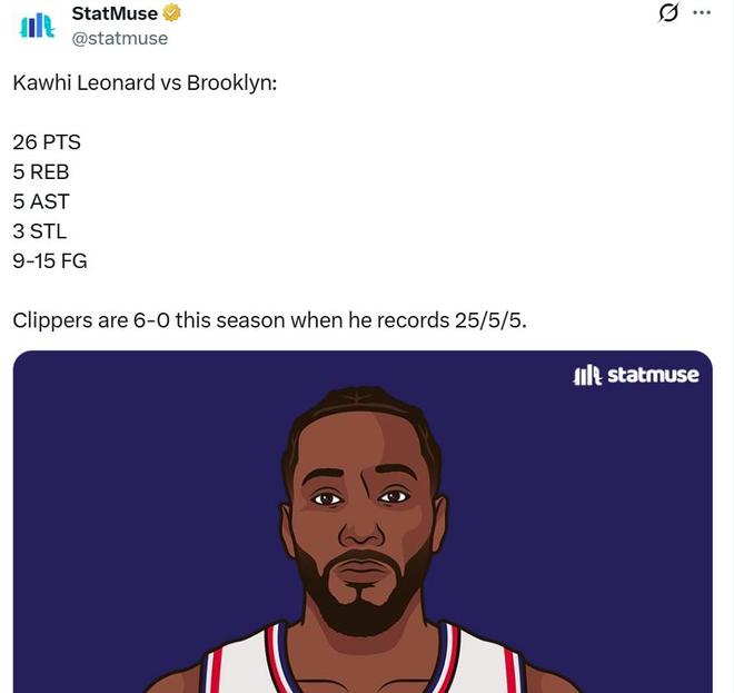 值得一提的是,本場比賽是小卡本賽季第6次單場至少拿到25+5+5數(shù)據(jù)表現(xiàn),期間快船隊(duì)6勝0負(fù)保持不敗金身。