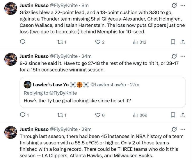 由于在開局表現(xiàn)不佳后,快船隊(duì)已經(jīng)將常規(guī)賽目標(biāo)調(diào)整為附加賽,這意味著,快船隊(duì)距離沖擊附加賽目標(biāo)僅差反超灰熊這一步,后者剛傳出將莫蘭特?cái)[上貨架的消息,內(nèi)部正處于動(dòng)蕩之中。