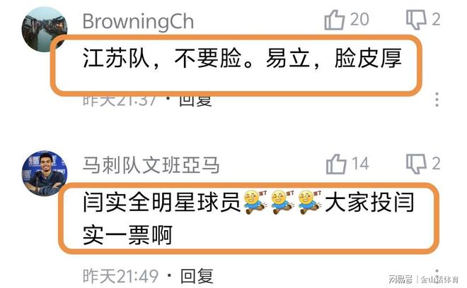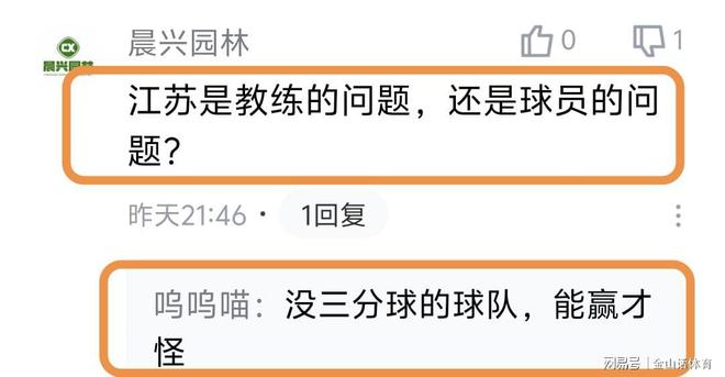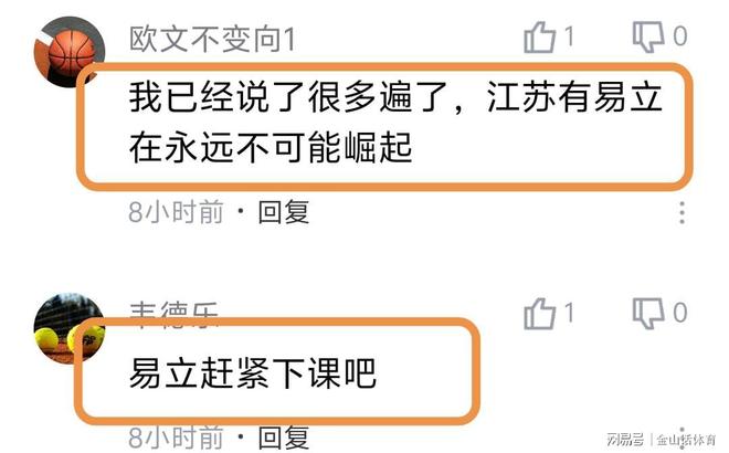 易立率隊(duì)?wèi)K淡的戰(zhàn)績(jī),也被球迷詬病?!敖K隊(duì)不要臉。易立臉皮厚”;“今年能不能贏下5場(chǎng)”;“易立怎么不會(huì)下課的”;“我已經(jīng)說了很多遍了,江蘇有易立在永遠(yuǎn)不可能崛起”;“易立趕緊下課吧”;“江蘇隊(duì)真的太差了”;“現(xiàn)在的易立成為了新的不倒翁”;“坑爹呀,年年如此”;“沒三分球的球隊(duì),能贏才怪”;“江蘇是教練的問題,還是球員的問題?”……