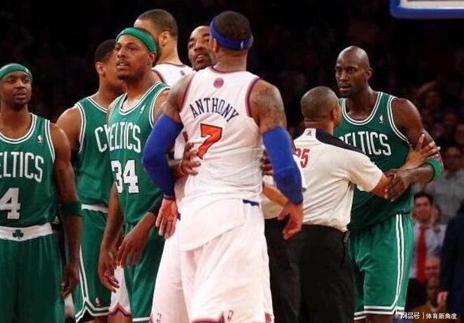可安東尼哪能咽下這口氣,堵在凱爾特人大巴旁邊,就等著加內(nèi)特出來。最后還是在紐約警察、麥迪遜花園主場(chǎng)保安以及當(dāng)時(shí)尼克斯主帥伍德森的“連哄帶勸”下,才極不情愿地離開了。那場(chǎng)面,也是一段經(jīng)典的“垃圾話風(fēng)云”佳話!