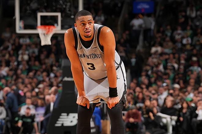 本場比賽中,馬刺的替補(bǔ)側(cè)翼大將凱爾登-約翰遜(Keldon Johnson)也是依然保持了穩(wěn)定的水準(zhǔn)。約翰遜全場出場28分14秒,投籃13中6,三分線外7中2,罰球5中4,得到了18分10籃板1助攻1搶斷的兩雙數(shù)據(jù),其中還包括了3個(gè)前場籃板,還有2次失誤和2次犯規(guī),正負(fù)值為+4。約翰遜在進(jìn)攻端依然是展現(xiàn)出了自己全面的得分能力,他有著不俗的突破能力和終結(jié)能力,他也能夠通過自己的投籃制造威脅。約翰遜在前后場籃板爭搶方面的表現(xiàn)同樣是可圈可點(diǎn)的,同樣是起到了很好的效果。約翰遜在比賽關(guān)鍵時(shí)刻也能夠保持水準(zhǔn)并且在攻防兩端都發(fā)揮出了自己的作用。球隊(duì)能夠抓住機(jī)會(huì)在最后時(shí)刻戰(zhàn)勝對手,也和他的出色表現(xiàn)有著密切的關(guān)系。