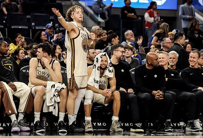 本場比賽中,勇士的替補后場新星布蘭丁-波杰姆斯基(Brandin Podziemski)的表現(xiàn)還是相當(dāng)不錯的。波杰姆斯基全場出場27分30秒,投籃10中6,三分線外6中2,罰球3中2,得到了16分4籃板5助攻1搶斷1蓋帽的數(shù)據(jù),還有2次失誤和4次犯規(guī),正負(fù)值更是達(dá)到了全場最高的+36。波杰姆斯基在進(jìn)攻端保持了不錯的手感,他也是通過各種方式拿下了不少的分?jǐn)?shù),將自己的得分能力充分發(fā)揮了出來。波杰姆斯基在傳球和組織方面的表現(xiàn)也是值得肯定的,他也是能夠在球權(quán)不多的情況下發(fā)揮出自己在這方面的作用。波杰姆斯基在防守端的表現(xiàn)也是值得肯定的,同樣是能夠起到很好的效果的。波杰姆斯基在攻防兩端的表現(xiàn)都非常突出,他在場上時球隊的局面也是一片大好,這也能夠體現(xiàn)在他超高的正負(fù)值上。毫無疑問,勇士能夠在本場比賽中取得一場大勝,也和波杰姆斯基在攻防兩端的一系列神勇表現(xiàn)有著密切的關(guān)系。