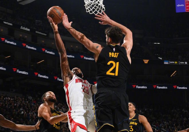 本賽季勇士整體表現(xiàn)不算好。開賽前30場(chǎng)比賽,戰(zhàn)績(jī)15勝15負(fù),得益于本賽季西部中段競(jìng)爭(zhēng)并不激烈,勇士勉強(qiáng)守住第八位置。球隊(duì)從休賽期庫(kù)明加的鬧劇開始,破事一樁接著一樁,雖然最終庫(kù)明加暫時(shí)留下,且開局前10場(chǎng)比賽表現(xiàn)不錯(cuò),但強(qiáng)扭的瓜不甜,科爾的體系不需要庫(kù)明加,打心底不想用他,所以庫(kù)明加離隊(duì)只是時(shí)間問(wèn)題。其次,最近十幾場(chǎng)比賽,勇士陷入兩個(gè)怪圈,庫(kù)里轟下高分的比賽,勇士打得很艱難,因?yàn)閹?kù)里也是對(duì)手進(jìn)攻端重點(diǎn)針對(duì)的隱患點(diǎn);如果庫(kù)里不在場(chǎng),巴特勒可以用另一種帶隊(duì)模式,兩者凈效率值差不多。