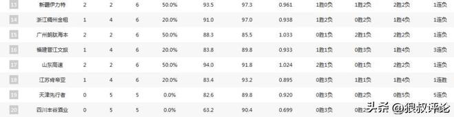 此外,目前也有2支0勝5負(fù)的球隊(duì),分別是天津,四川,其中四川是全華班出戰(zhàn),上一場(chǎng)只得到53分刷新CBA歷史第二低分。