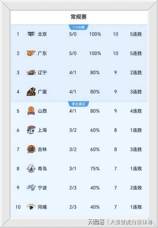 衛(wèi)冕冠軍廣廈男籃和山西男籃取勝之后,總戰(zhàn)績(jī)變?yōu)?勝1負(fù),與遼寧一起排名前五,上海隊(duì)3勝2負(fù)排名第6;