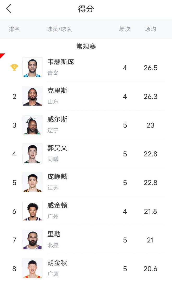 作為一名1年級(jí)新秀,龐崢麟實(shí)在是太厲害了,他的速度和節(jié)奏都是CBA頂級(jí),這賽季5場(chǎng)比賽,每場(chǎng)都得分上雙,場(chǎng)均上場(chǎng)30.9分鐘,能得到22.8分3.6籃板4助攻,投籃命中率高達(dá)59.4%,三分球命中率50%,其中場(chǎng)均得分高居CBA第四位,和郭昊文并列,投籃命中率和三分球命中率則比很多外援都要高,比如說場(chǎng)均得分排名第二的山東外援克里斯(206cm),命中率就只有50.8%,而遼寧男籃的小外援威爾斯,投籃命中率更是只有45.3%。