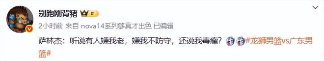 這個賽季他來來到廣東隊(duì)后徹底變了,變得打球心態(tài)好,變得認(rèn)真勤奮,依然充滿活力。這不?昨晚在與廣州隊(duì)的比賽中,他就爆砍32分和11板,19投15中,命中率非常嚇人,高達(dá)78.9%,而且有中投,有三分,還能籃下強(qiáng)打,真是十般武器都有。沒錯,這名隊(duì)員就是曾經(jīng)獲得外籍MVP的薩林杰。兩媒體人不約而同地夸了他,別跑剛背豬幽默地說,“薩林杰:聽說有人嫌我老,嫌我不防守,還說我毒瘤?”別跑剛背豬還用上了狡黠的表情。