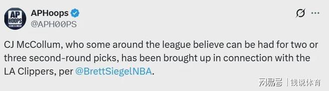 Siegel指出,快船可以利用科林斯價(jià)值2660萬美元的到期合同作為主要籌碼進(jìn)行薪資匹配,也可以搭配其他球員(如博格丹1620萬美元的合同)來完成交易。麥科勒姆本賽季的薪資為3066萬美元。