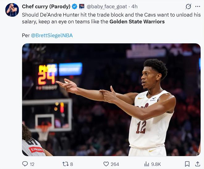 根據(jù)勇士媒體的報道,如果騎士前鋒亨特決定執(zhí)行他的球員選項(xiàng),騎士隊(duì)也想降低支出愿意處理亨特的合同,那么勇士隊(duì)會追逐亨特。