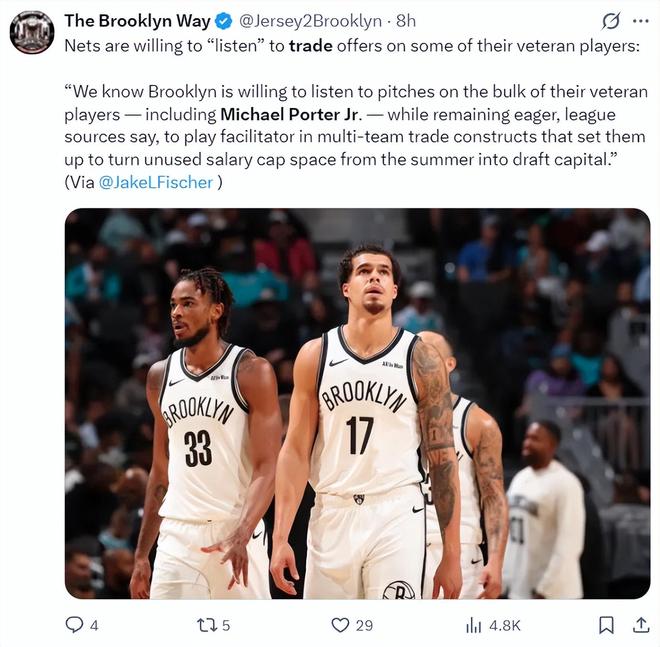 根據(jù)《露天看臺(tái)》記者杰克-費(fèi)舍爾的報(bào)道,籃網(wǎng)已經(jīng)將小波特?cái)[上貨架,希望用他換取未來(lái)資產(chǎn)、首輪選秀權(quán)?;@網(wǎng)是真怕小波特繼續(xù)打讓他們首輪簽的順位持續(xù)下滑,他打得太好影響球隊(duì)擺爛。