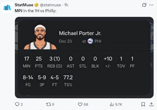 賽前籃網(wǎng)媒體就認(rèn)為來(lái)到籃網(wǎng)的小邁克爾-波特就如同凱文-杜蘭特一般,因?yàn)樾〔ㄌ貋?lái)到籃網(wǎng)后已經(jīng)場(chǎng)均25.6分,三分球命中率高達(dá)40%,他一掃在掘金時(shí)期的陰霾。