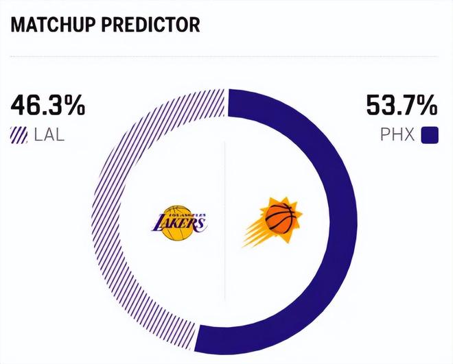 賽前,美媒ESPN對本場比賽進行了勝率預測,湖人勝率僅有46.3%,太陽隊勝率則意外達到了53.7%, 略占優(yōu)勢。