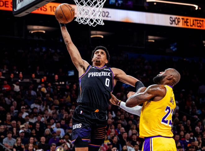 后半段古德溫和馬威持續(xù)發(fā)力,詹姆斯罰球也不中,好在跳投和三分手感還在,半場(chǎng)結(jié)束時(shí),太陽67-57領(lǐng)先湖人。進(jìn)入下半場(chǎng),奧尼爾轟三分,馬威籃下肆虐,布克則軍訓(xùn)尼克史密斯,太陽又是一波10-2小高潮,暫?;貋砗藳]起色,馬威繼續(xù)欺負(fù)里夫斯,吉萊斯皮和布魯克斯下三分雨,分差已經(jīng)到22分!中段湖人已經(jīng)有些放棄抵抗的意思,馬威繼續(xù)打2+1,這就是當(dāng)初被湖人嫌棄的球員?把湖人內(nèi)線打穿了!后半段布魯克斯撤步三分+拉桿上籃+歐洲步拋投,分差越來越大,太陽全線開花。三節(jié)打完,太陽112-86領(lǐng)先湖人。