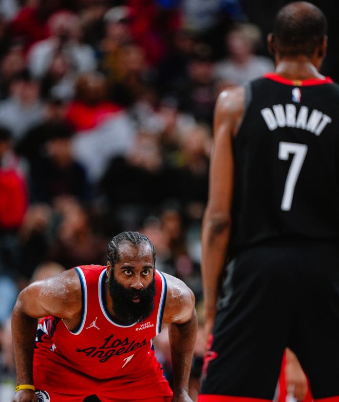 第三節(jié)哈登面對杜蘭特再度打成,面對申京小拋投也中,這一節(jié)哈登3中2+罰球10中10,沒錯單節(jié)10個罰球,拿到14分2籃板2助攻,他與倫納德聯(lián)手將分差拉開到17分,烏度卡對此非常不滿,末節(jié)烏度卡用了一套死亡五小,杜蘭特直接被烏度卡棄用。