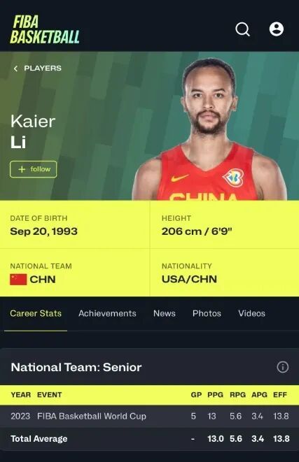 李凱爾代表中國男籃出征了2023年的男籃世界杯,他場均得到13.0分5.6籃板3.4助攻,中國男籃取得了1勝4負(fù)的戰(zhàn)績。